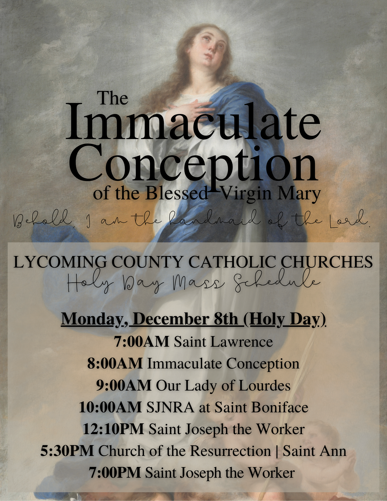 Please note the Parish Office will be closed for the Holy Day. There will be no Confessions & Adoration at 6:00PM in lieu of Mass.